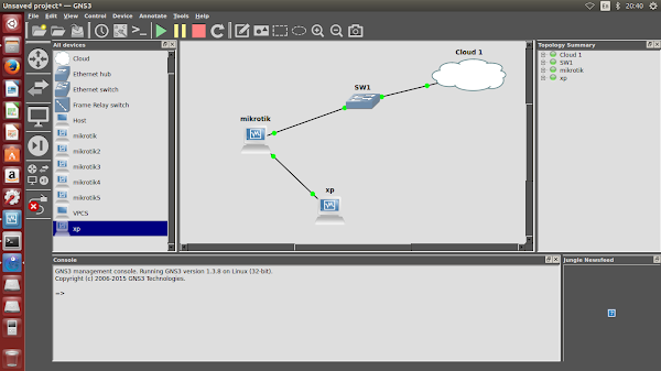 6. Buka aplikasi GNS3, Lalu gambar topologi seperti diatas. Lalu jalankan